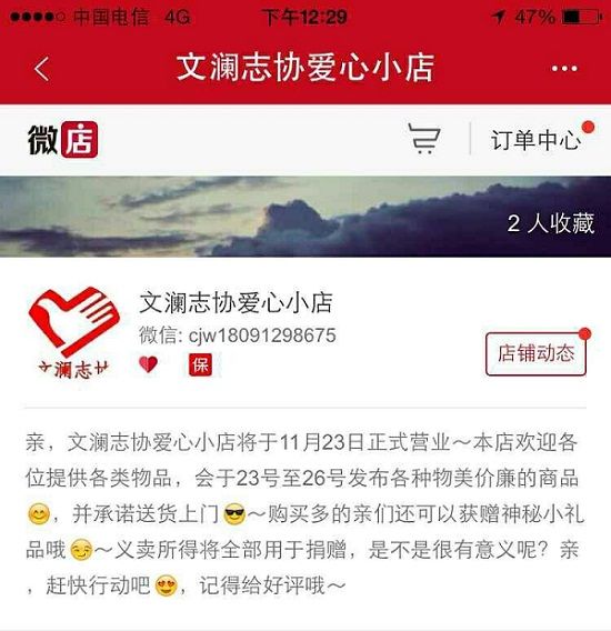 此次义卖,文澜志协借助了当下流行的互联网微店平台,改变了传统的义卖形式。从活动前期开始,志愿者们按照分工各司其职、通力合作:从前期宣传、答疑、联系同学、收集物品等,到“文澜志协爱心小店”发布商品信息,再到送货上门,均有专人负责。同时,志协工作人员每天都会做好财务、物品买卖的统计并及时发布。笔者从志协工作人员处获悉,本次义卖所有善款将被捐出。