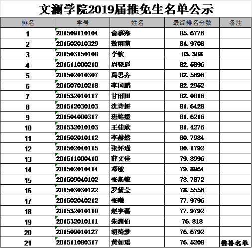 根据《中南财经政法大学推荐优秀应届本科毕业生免试攻读硕士学位研究生工作管理办法》、《关于开展推荐2019届优秀本科毕业生免试为硕士研究生工作的通知》以及《三公赌博技巧大全 推荐优秀应届本科毕业生免试攻读硕士学位研究生工作管理办法补充细则》的要求,经学生个人申报,三公赌博技巧大全 推免生资格审查小组审查及面试。三公赌博 推免生工作小组依据学生最后成绩从高到底排序,审议通过确定20名推免生人选和一个替补人选。现将三公赌博技巧大全 2019届推免生名单予以公示(详见附件)。公示时间为2018年9月15日12点至2018年9月17日12点。如有异议,请于2018年9月17日12点前实名向三公赌博技巧大全 办公室(文澜104)反应,逾期不予受理。