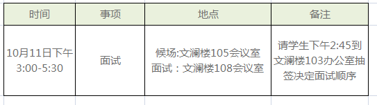 复试突出对考生能力考查,注重一贯表现,强化对考生科研创新潜质和专业能力倾向的考核。复试形式为面试,面试总成绩为100分,申请者根据分数,依序择优录取。复试总成绩低于60分者为不合格。根据教育部文件规定,未到学校参加复试的考生视为弃权,不予录取;复试总成绩不合格的考生,不予录取。