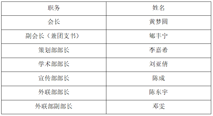 根据《中南财经政法大学学生社团管理办法》及社团换届工作开展等相关要求,本着公开、公平、公正原则,经个人申请、演讲答辩、匿名投票、组织考察环节,拟任用以下同学为三公赌博技巧大全 Eureka学术竞赛互助协会主要负责人及干部: