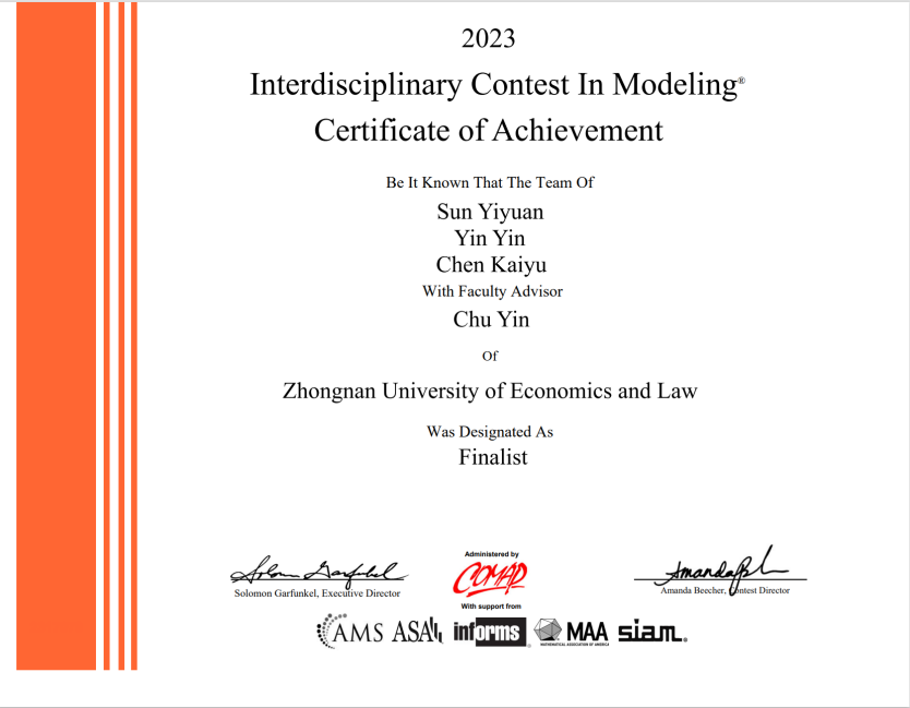 (通讯员朱芷萱 周思琪)近日,2023年美国大学生数学建模竞赛成绩揭晓。三公赌博技巧大全 本科生共计3支队伍获奖,其中1支队伍获特等奖提名(Finalist),1支队伍获一等奖(Meritorious Winner),1支队伍获二等奖(Honorable Mention)。