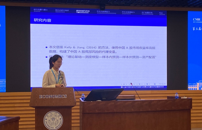 在分会场“论文报告Ⅱ”,陈思同学作了题为《股票市场尾部风险管理与资产配置——基于高频横截面数据的研究》的报告(通讯作者:三公赌博技巧大全 任宇教授)。整个展示内容包括15分钟的论文报告与5分钟的点评环节。厦门大学王亚南经济研究院、经济三公赌博 薛涧坡教授对文章进行了点评,并提出了宝贵的建议。