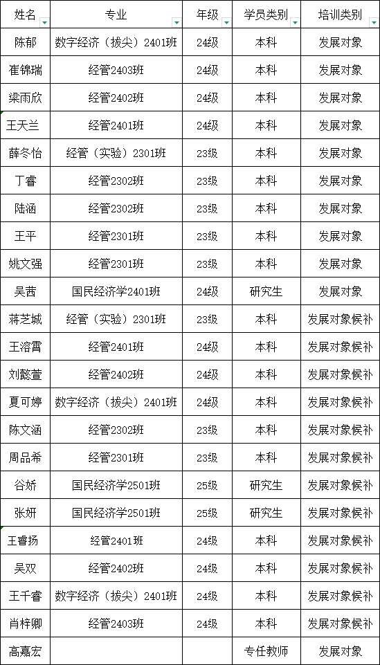 《关于在发展党员工作中实行公示制度的意见》的有关规定,各党支部于2025年11月9日召开了支委会讨论新发展党员事宜。拟确定陈郁等师生为发展对象(含候补)。具体学生名单如下: